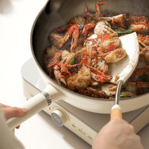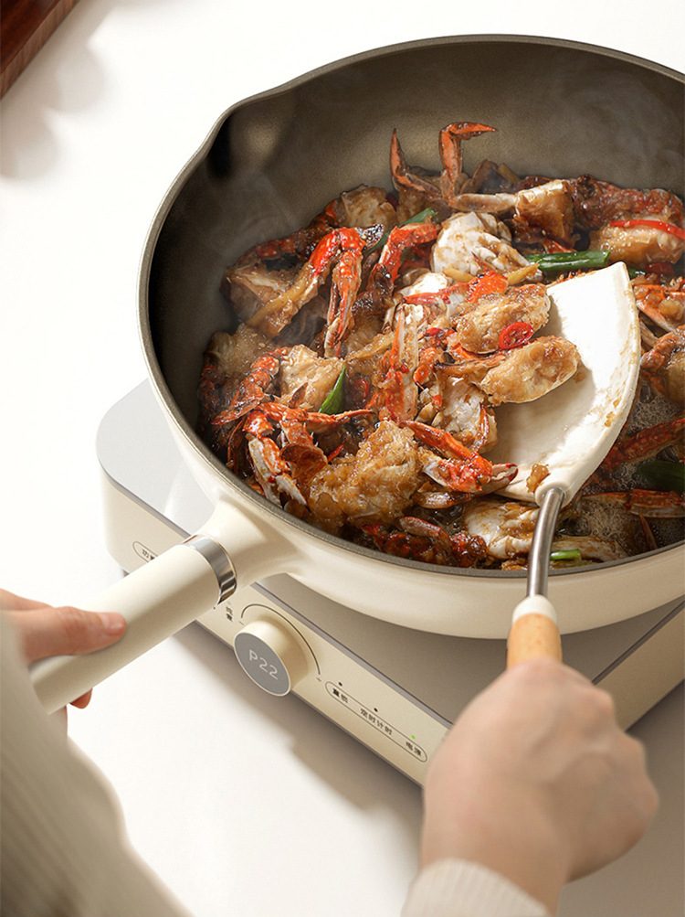 全能烹飪與爐灶兼容: 具備炒、炸、煎、保溫、易清洗等多項功能;平底設計支援電磁爐、煤氣灶等通用爐灶。